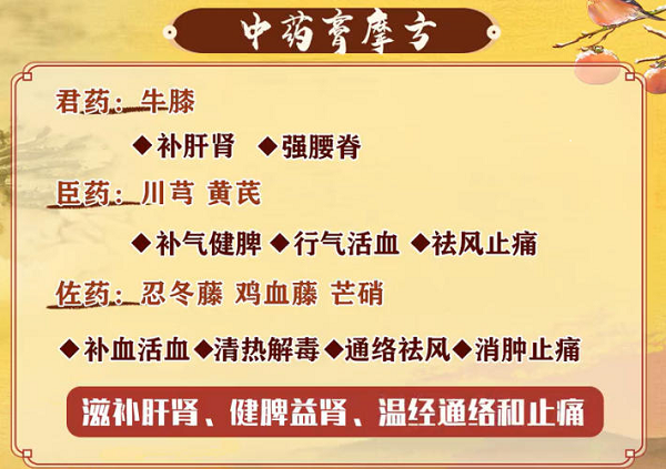 那么如何缓解和治疗“老寒腿”这一症状呢,史士昊老师根据御医派“七分养三分治”这一理念,给出了他的解决方法,也是一个实用的妙方,叫作中药膏摩方。